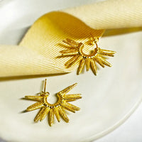 Statement Gold Sunburst Hoop Earrings -Textured Spike Design