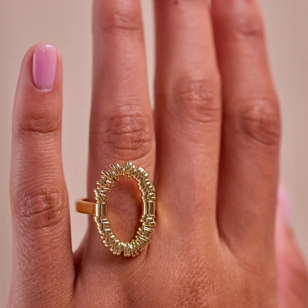 Radiate Textured Oval Ring - 18K Gold Plated Adjustable