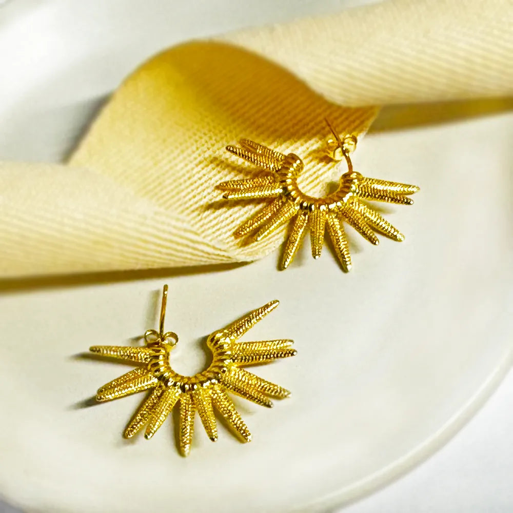 Regular price $30.00Sale price $30.00 Regular priceUnit price / perMake a bold entrance with these Golden Bloom statement drop earrings. Featuring layered petal-inspired shapes in a radiant gold tone, they combine artistic detail with lightweight...