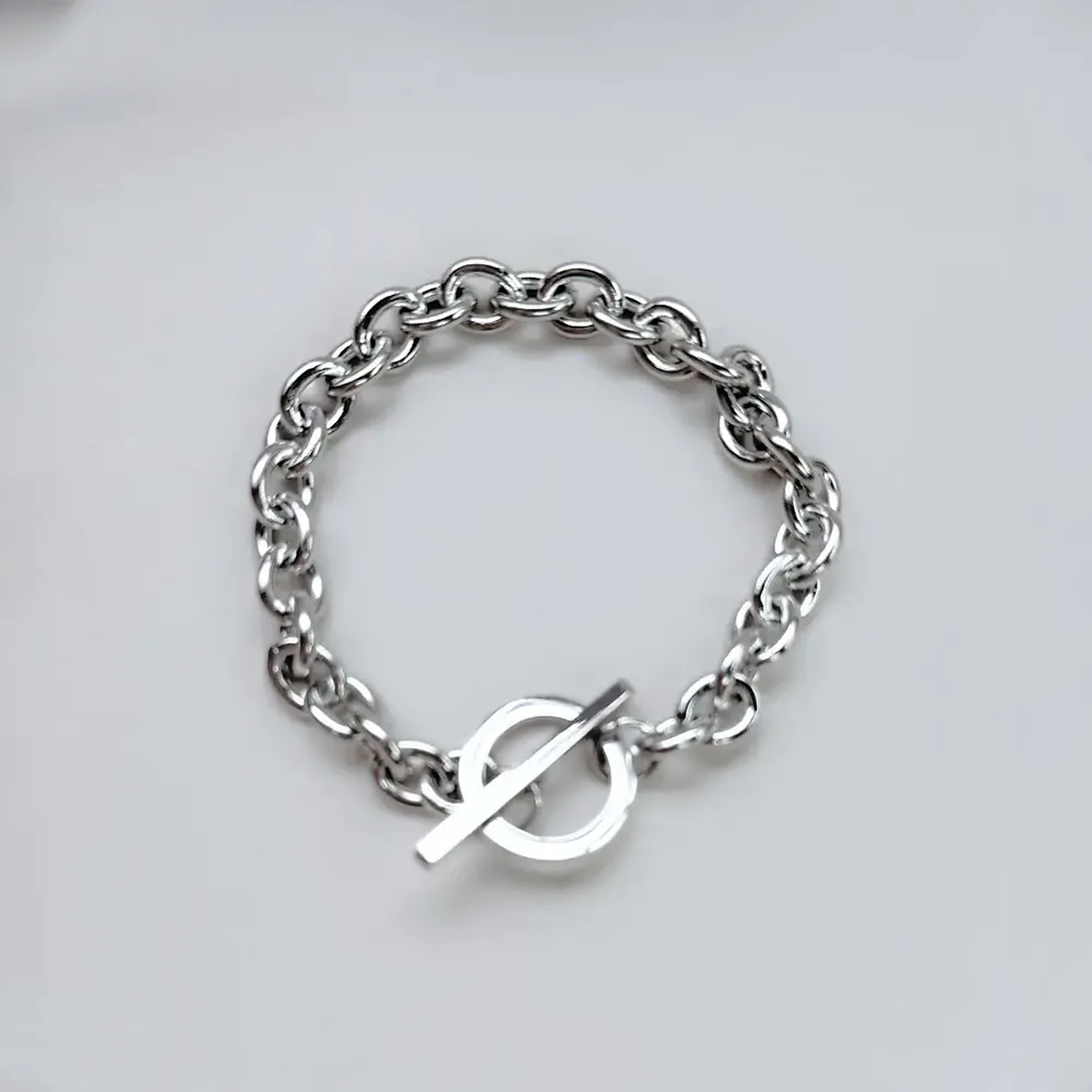 Crafted in premium 316L stainless steel, this 8-inch toggle chain bracelet combines durability with modern elegance. Featuring polished round links and a secure toggle clasp, it's a timeless accessory designed for everyday wear. Perfect for empowered women who value minimalist yet bold jewelry.